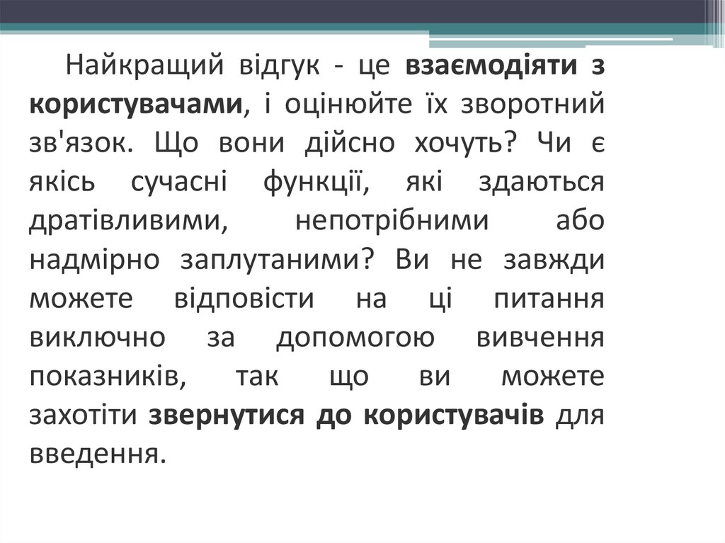 Найкращий відгук - це взаємодіяти зкористувачами, і оцінюйте їх зворотний