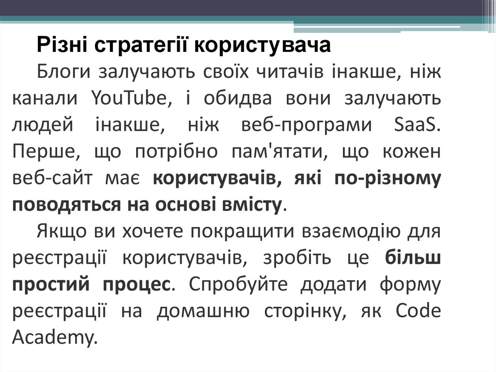 користувачів. Потрібно продумати про те, що ви