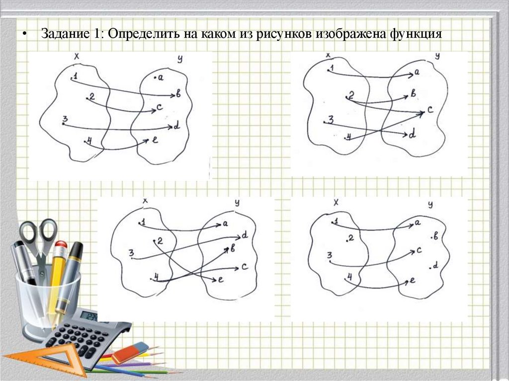 • Задание 1: Определить на каком из рисунков изображена функция6.