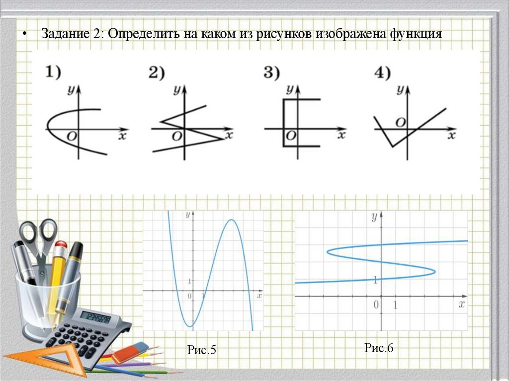 • Задание 2: Определить на каком из рисунков изображена функцияРис.5