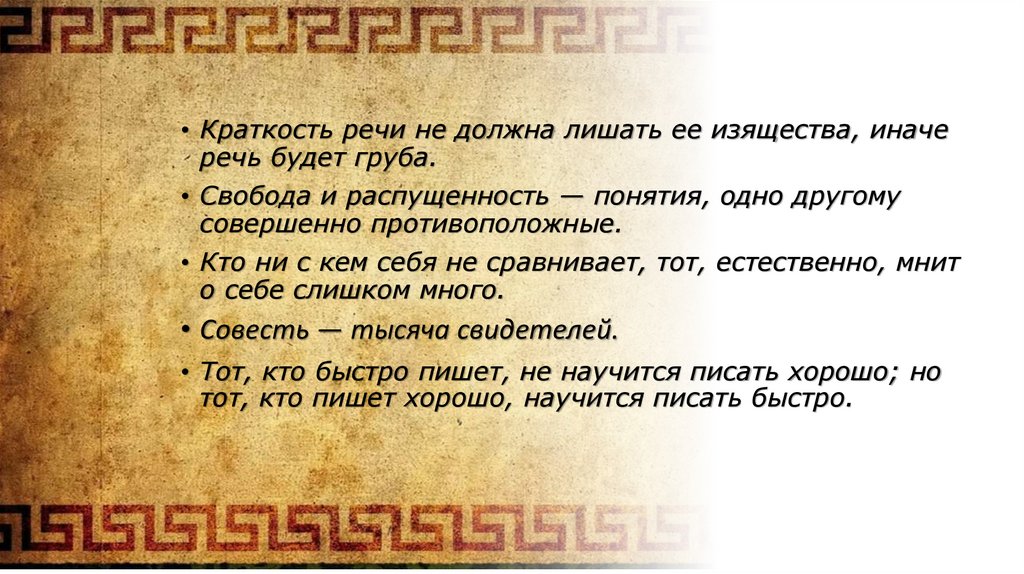 • Краткость речи не должна лишать ее изящества, иначеречь будет груба.