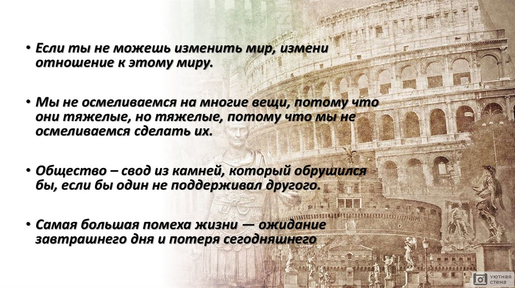 • Если ты не можешь изменить мир, измениотношение к этому миру.