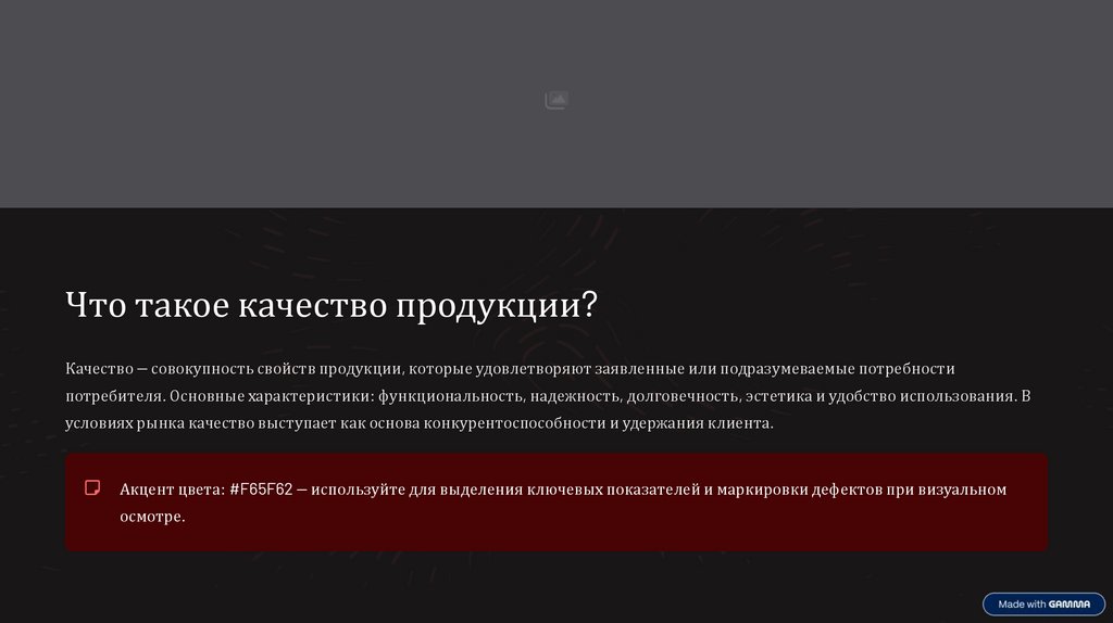 Акцент цвета: #F65F62 — используйте для выделения ключевых показателей и маркировки дефектов при визуальном