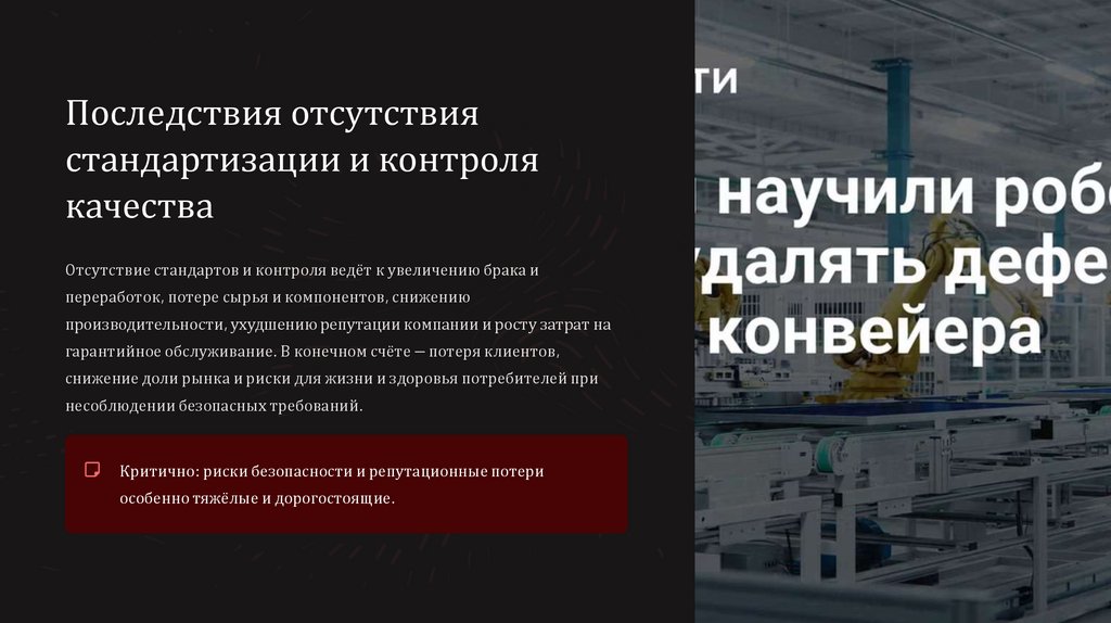 Отсутствие стандартов и контроля ведёт к увеличению брака и