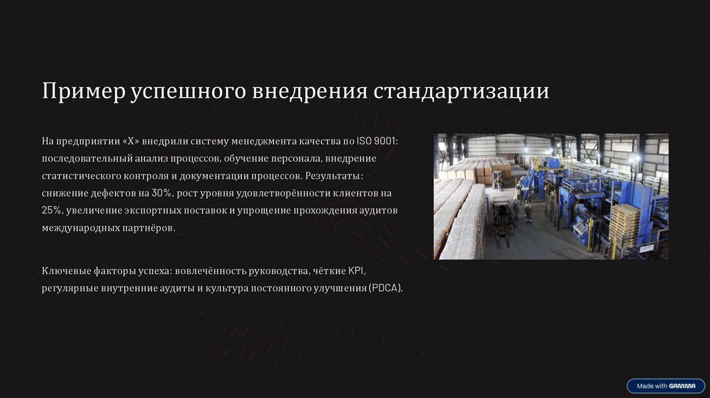 Пример успешного внедрения стандартизацииНа предприятии «Х» внедрили систему менеджмента качества по ISO 9001: