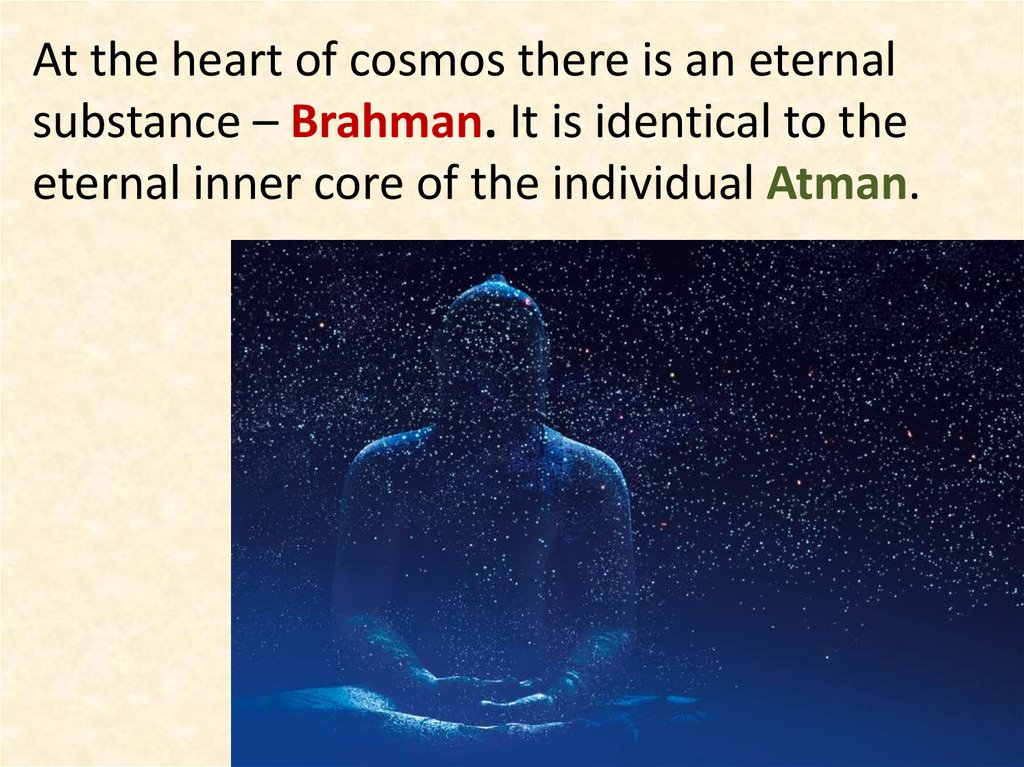 At the heart of cosmos there is an eternalsubstance – Brahman. It is identical to the
