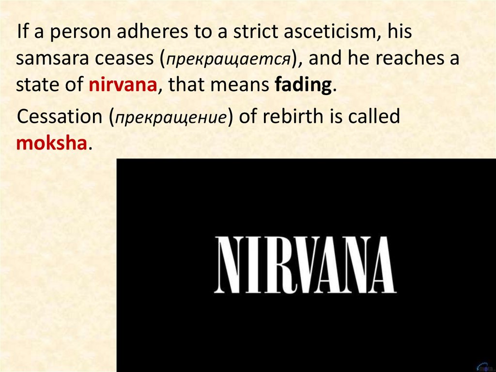 If a person adheres to a strict asceticism, hissamsara ceases (прекращается), and he reaches a