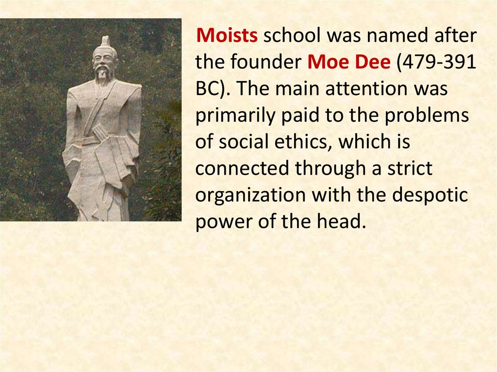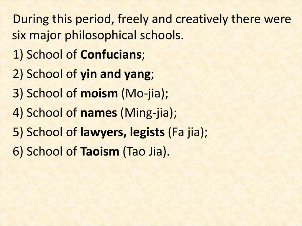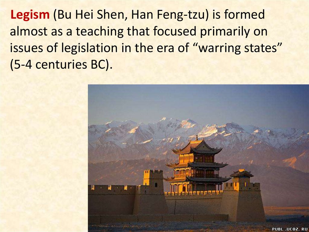 Legism (Bu Hei Shen, Han Feng-tzu) is formedalmost as a teaching that focused primarily on