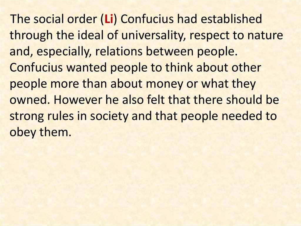 The social order (Li) Confucius had establishedthrough the ideal of universality, respect to nature