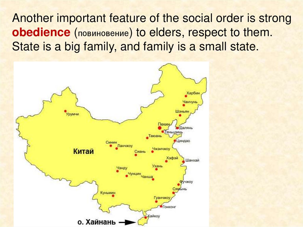 Another important feature of the social order is strongobedience (повиновение) to elders, respect to them.