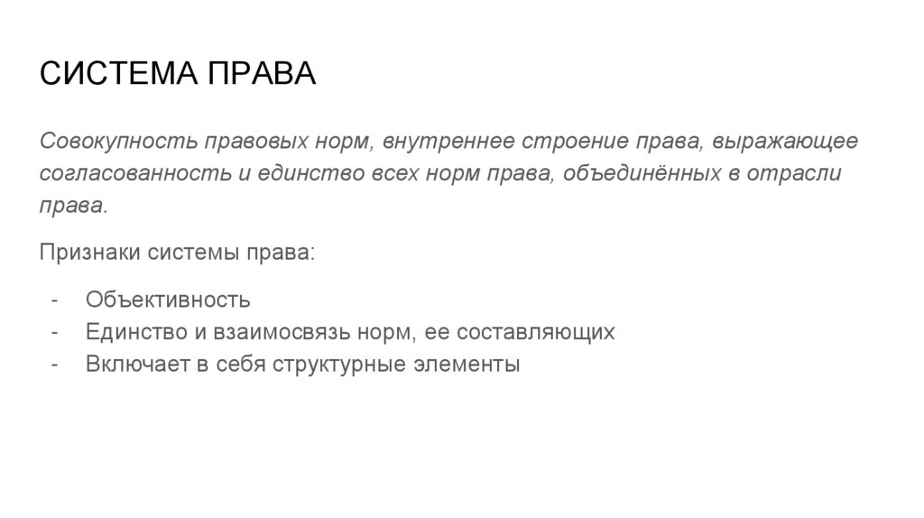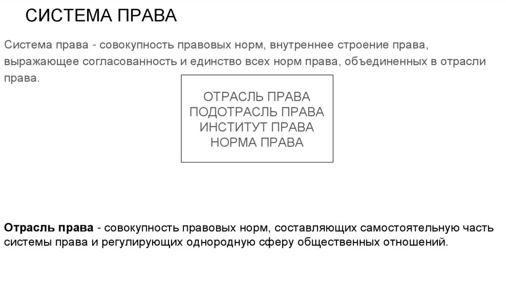 СИСТЕМА ПРАВАСистема права - совокупность правовых норм, внутреннее строение права,