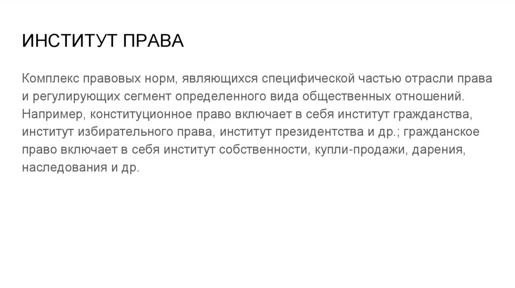 ИНСТИТУТ ПРАВАКомплекс правовых норм, являющихся специфической частью отрасли права