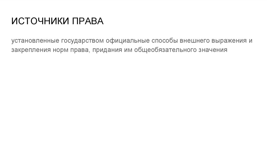 ИСТОЧНИКИ ПРАВАустановленные государством официальные способы внешнего выражения и