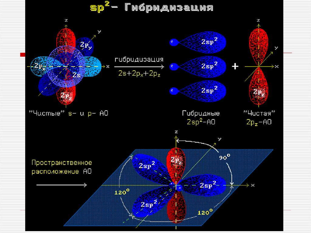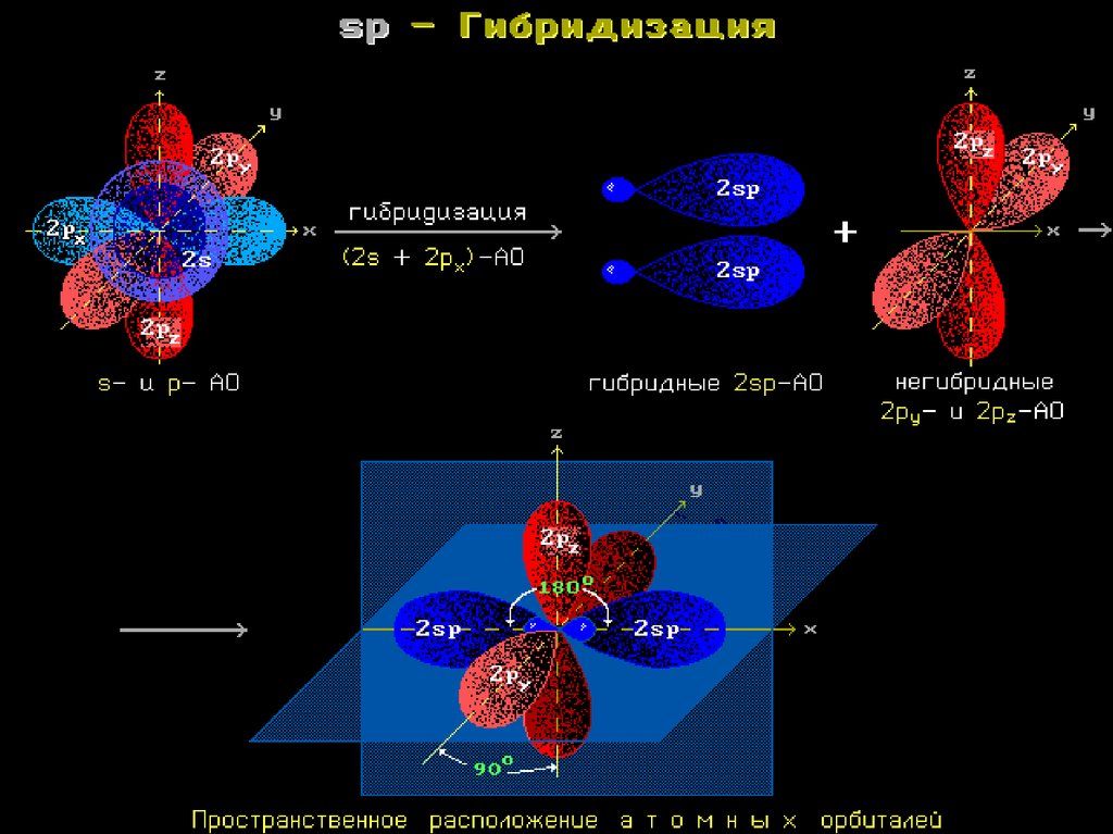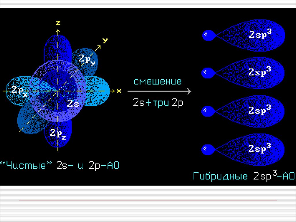 Гибридизация АО - это взаимодействие(смешение) разных по типу, но