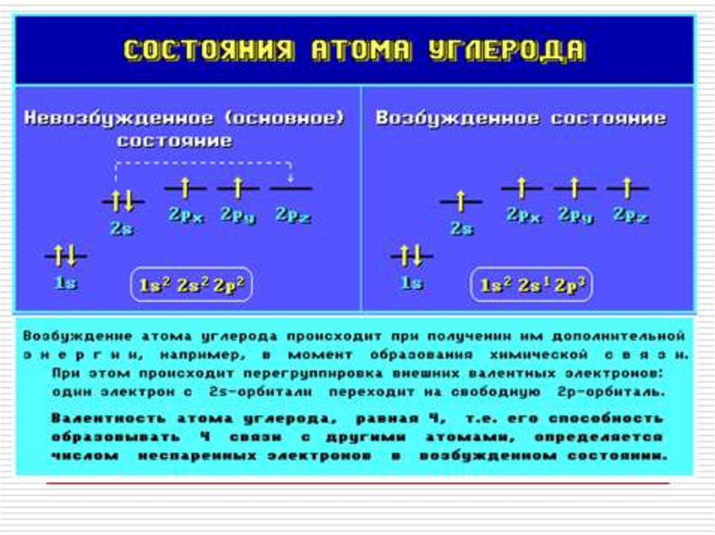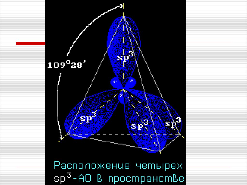 Каждый атом углерода в молекулах алкановнаходится в состоянии sp3-гибридизации —