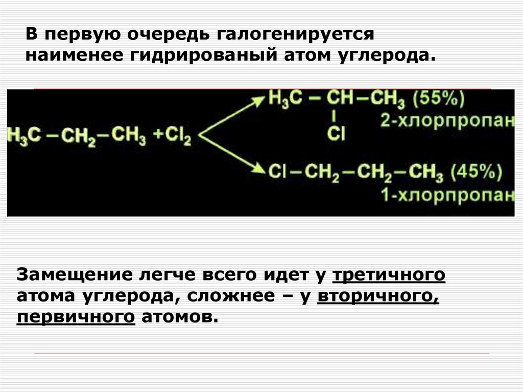 Замещение СН4 + Сl2 hv CH3Cl + HCl