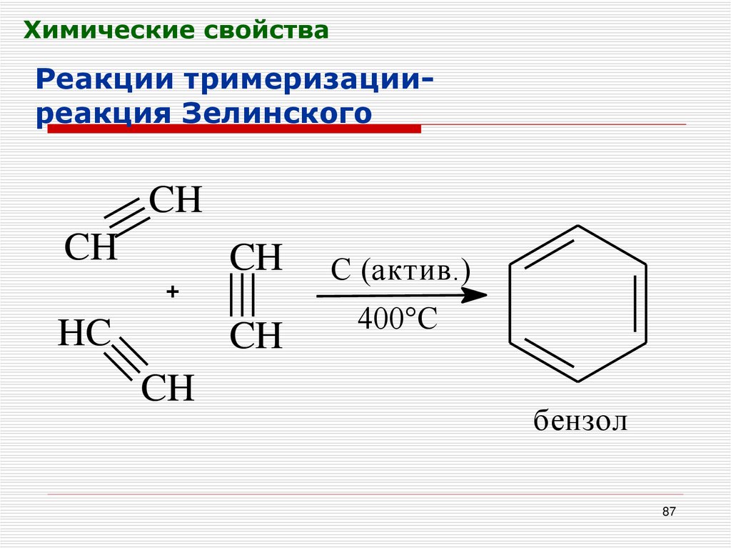 Химические свойстваРеакции тримеризацииреакция Зелинского