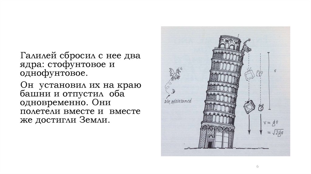 Галилей сбросил с нее дваядра: стофунтовое и