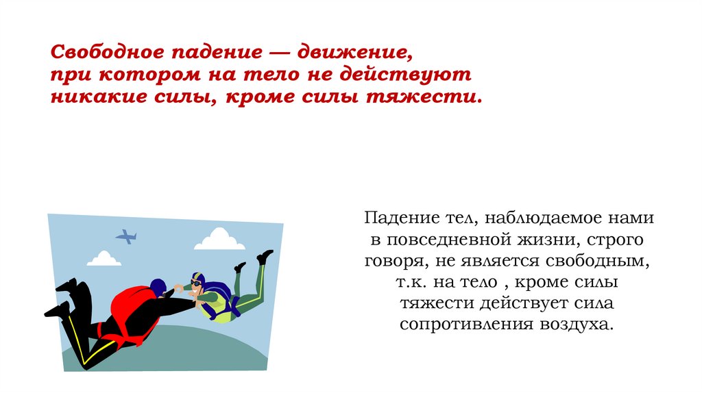 Свободное падение — движение,при котором на тело не действуют