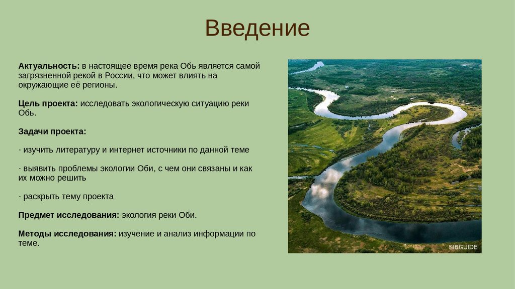 ВведениеАктуальность: в настоящее время река Обь является самой