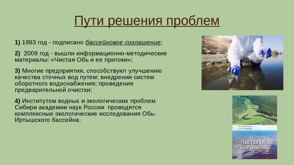 Пути решения проблем1) 1993 год - подписано бассейновое соглашение;