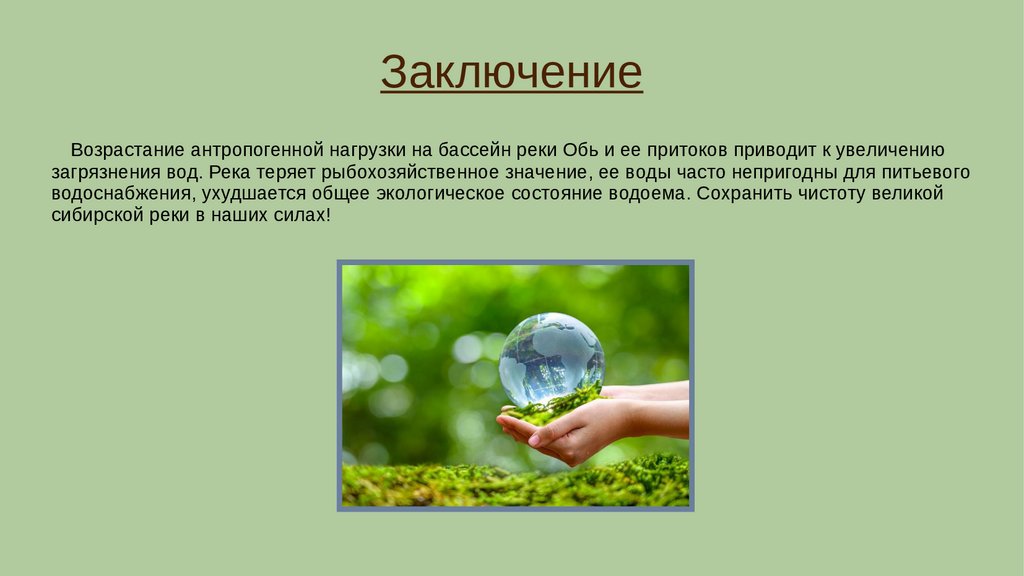 ЗаключениеВозрастание антропогенной нагрузки на бассейн реки Обь и ее притоков приводит к увеличению