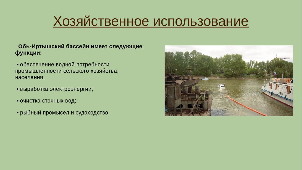 Хозяйственное использованиеОбь-Иртышский бассейн имеет следующие