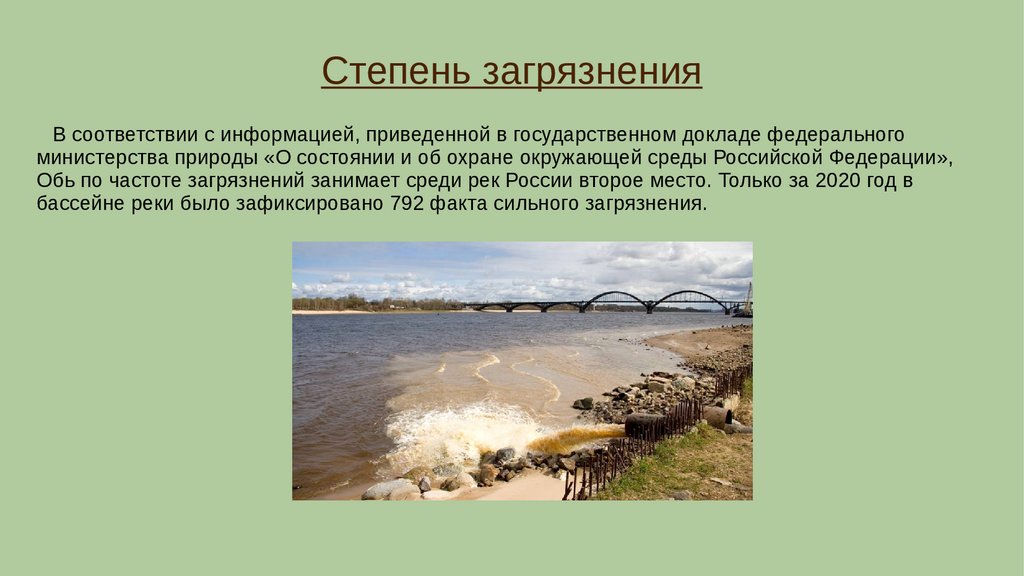 Степень загрязненияВ соответствии с информацией, приведенной в государственном докладе федерального