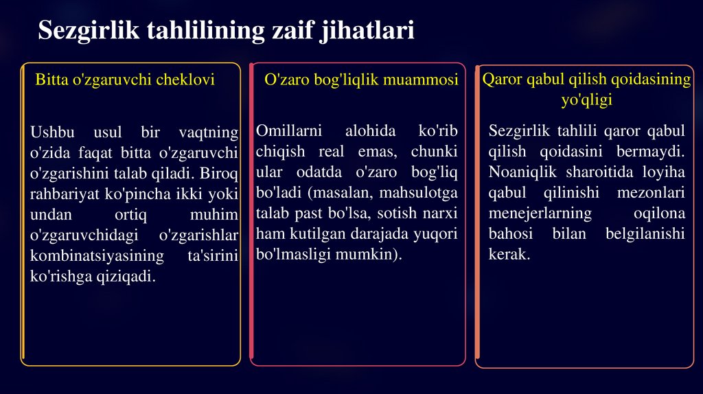 qaysi omil eng "sezgir" ekanini ko'rsatadi.