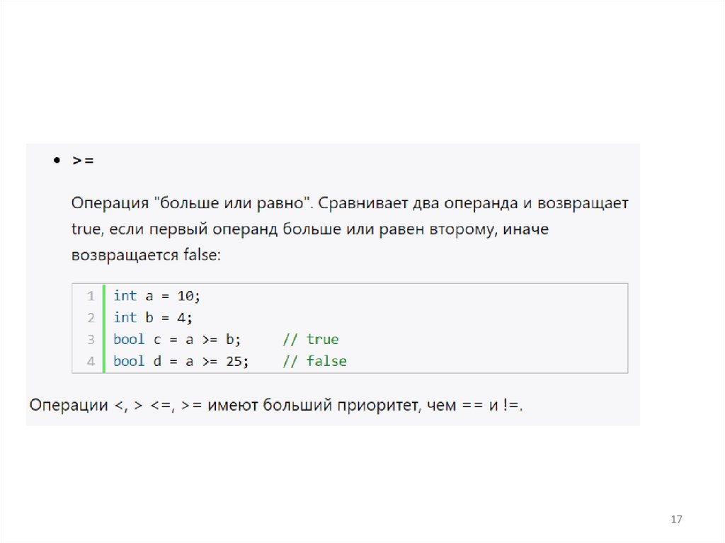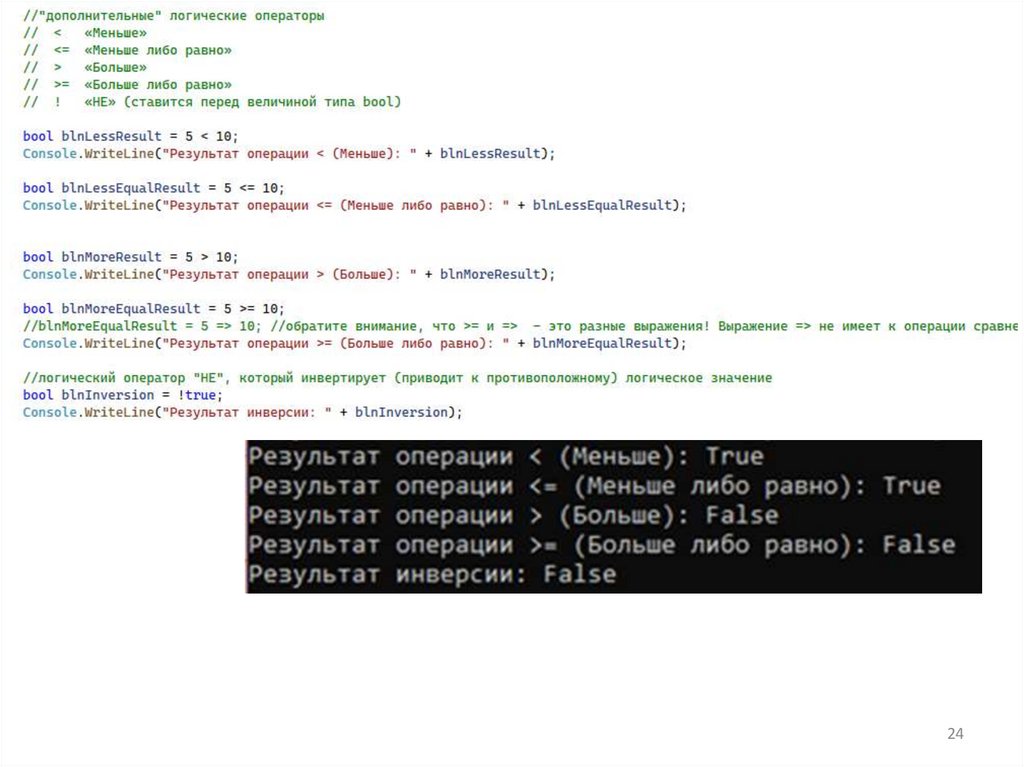 6. Инверсия Унарный ! (логическое отрицание) оператор Не ¬