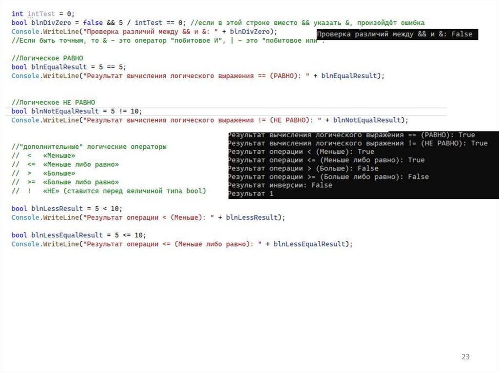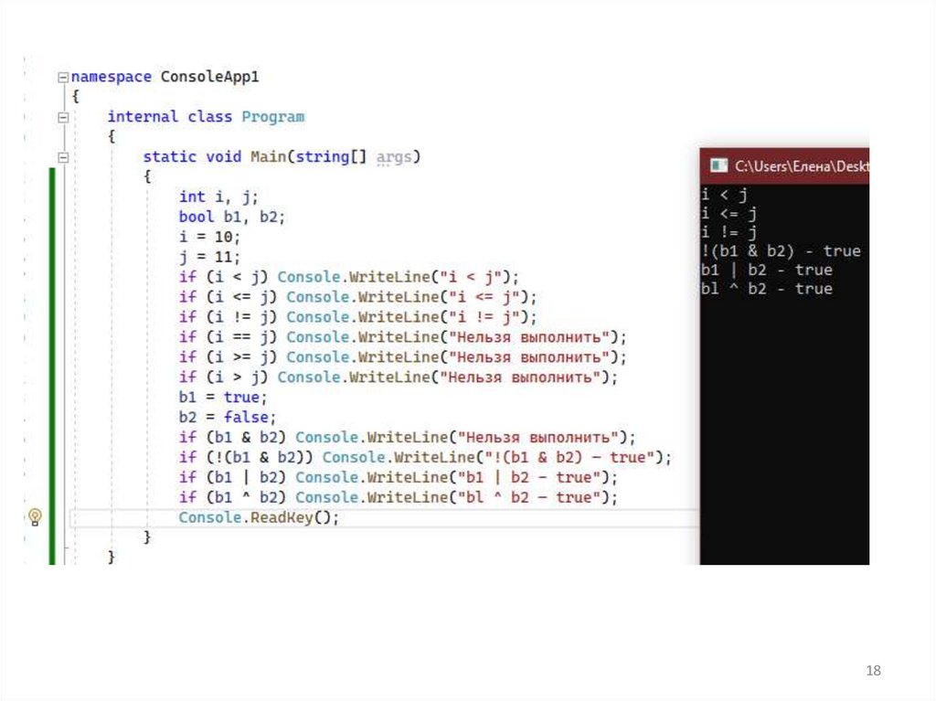 одно из этих логических значений. Кроме того, в C# не определено взаимное преобразование логических и целых значений.