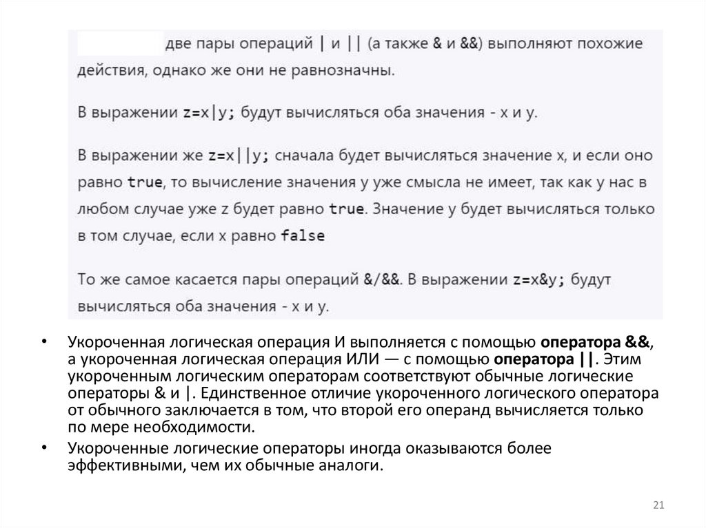 а укороченная логическая операция ИЛИ — с помощью оператора ||. Этим