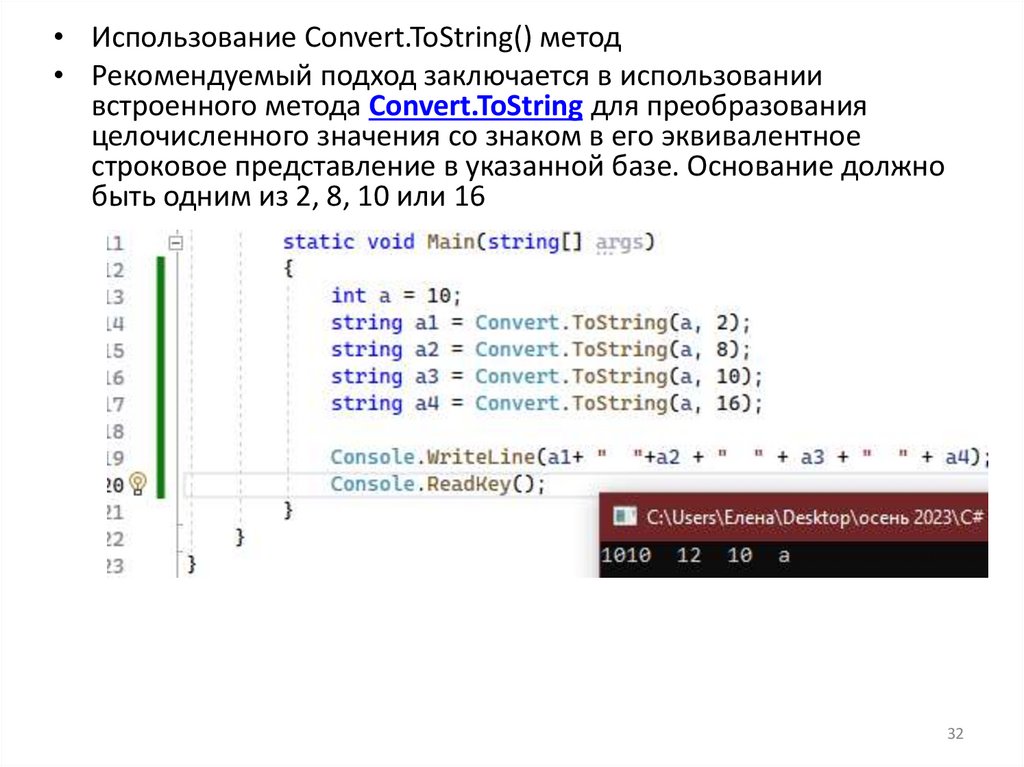 встроенного метода Convert.ToString для преобразования