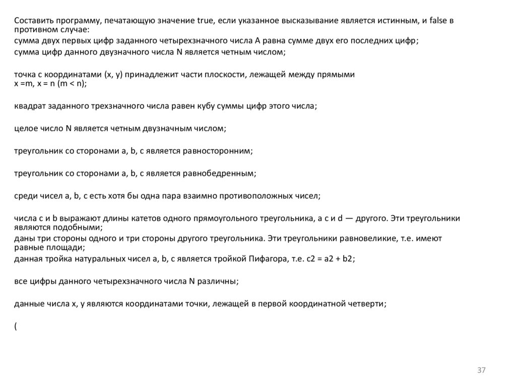 38. Составить программу, печатающую значение true, если указанное высказывание является истинным, и false в противном случае: