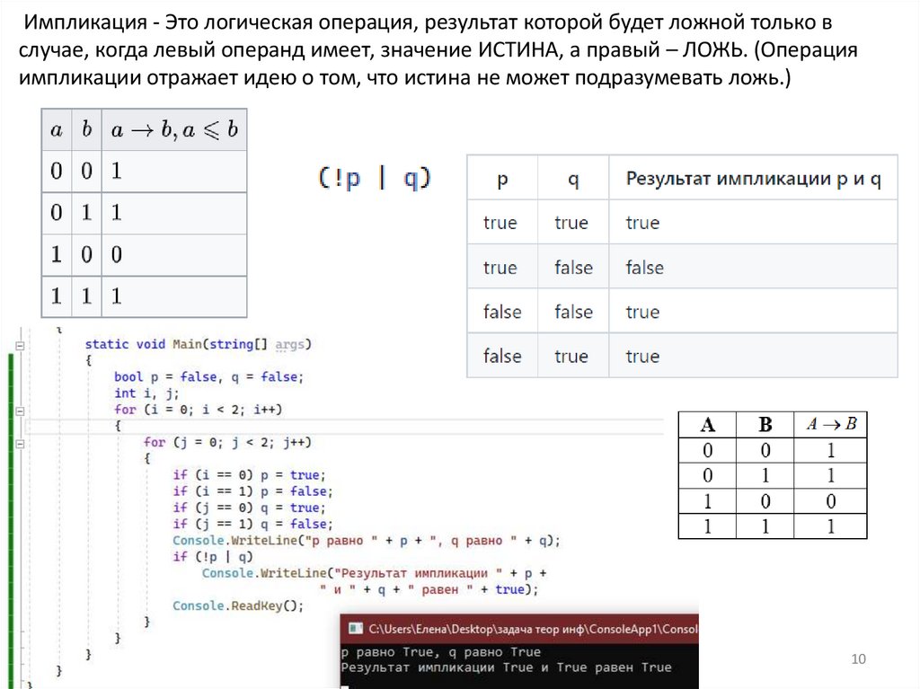 импликации отражает идею о том, что истина не может подразумевать ложь.)