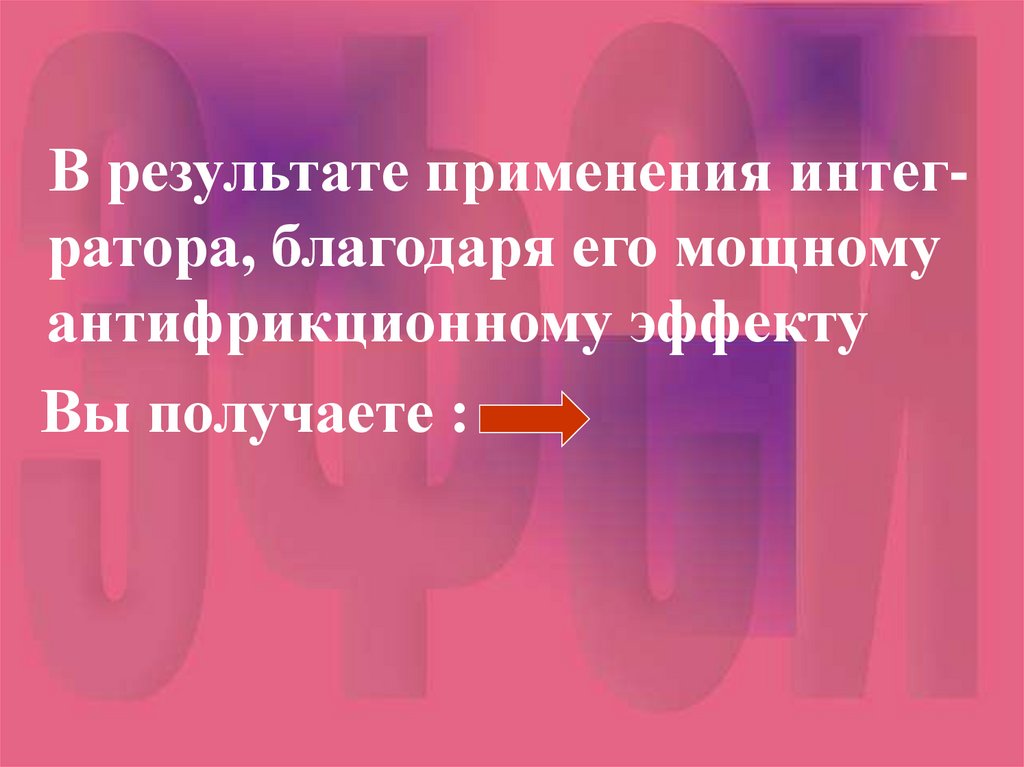 В результате применения интегратора, благодаря его мощномуантифрикционному эффекту