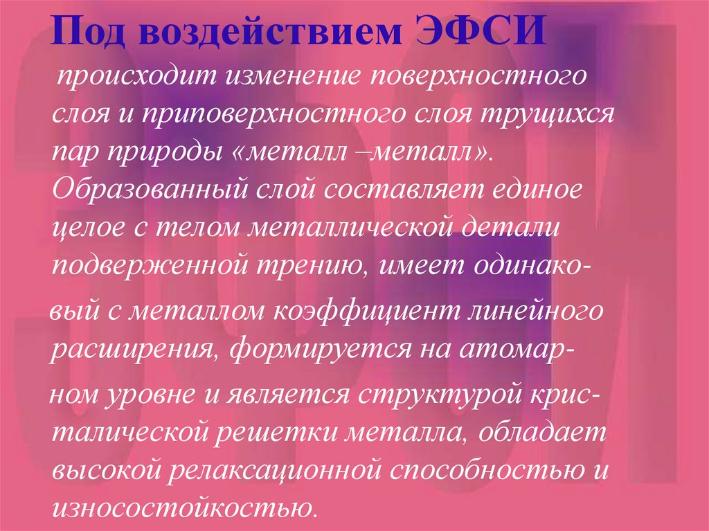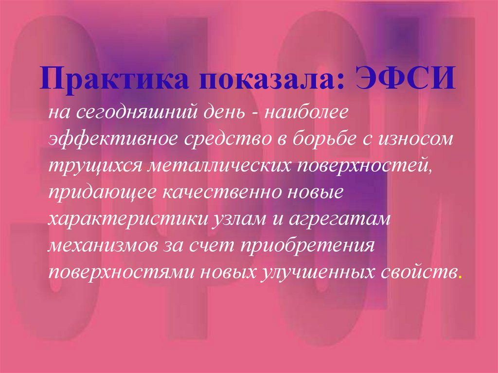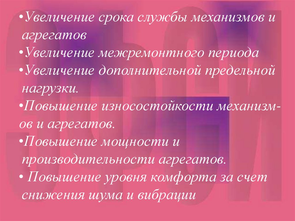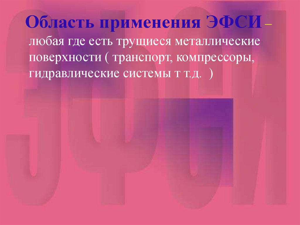 Область применения ЭФСИ –любая где есть трущиеся металлические