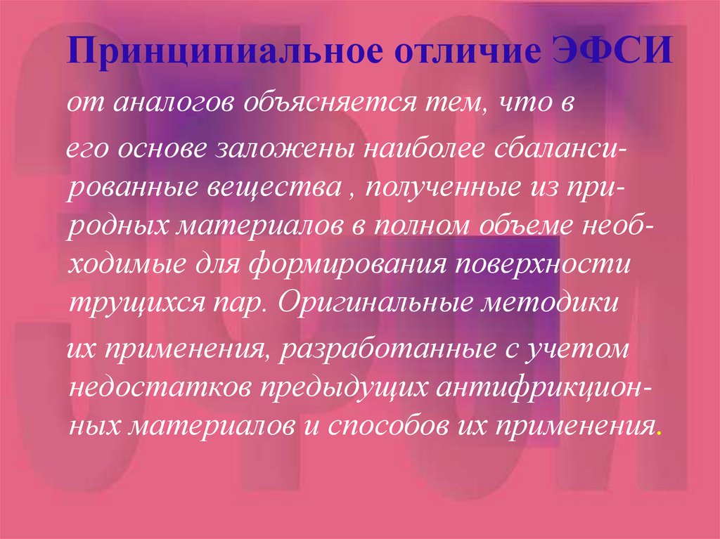 Принципиальное отличие ЭФСИот аналогов объясняется тем, что в