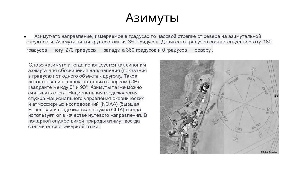 АзимутыАзимут-это направление, измеряемое в градусах по часовой стрелке от севера на азимутальной