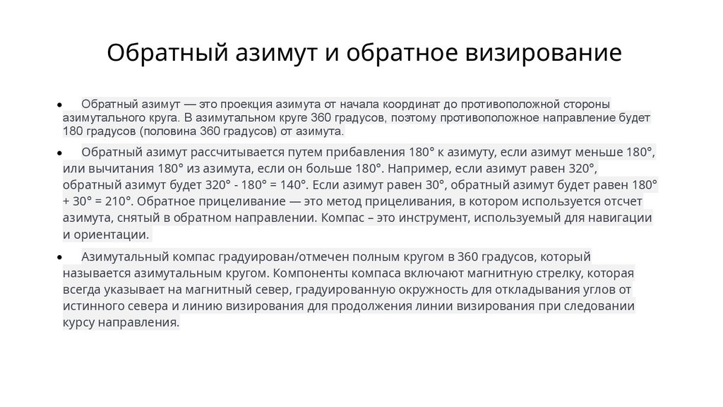 азимута, снятый в обратном направлении. Компас – это инструмент, используемый для навигации