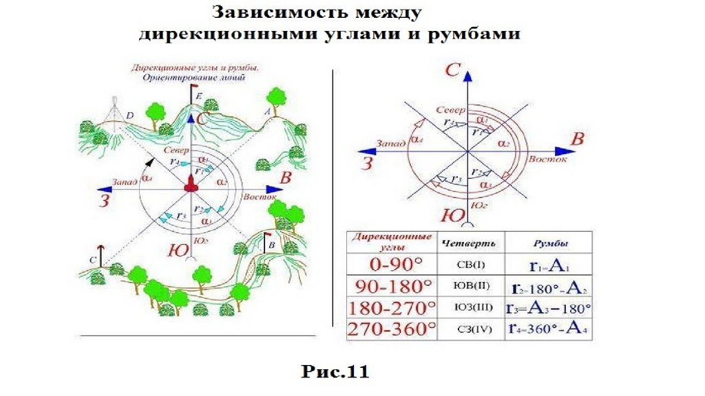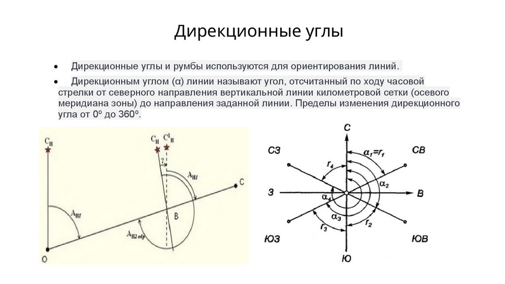 Дирекционные углыДирекционные углы и румбы используются для ориентирования линий.