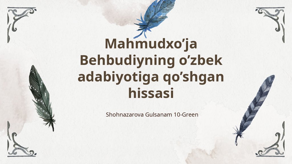 1. Mahmudxo’ja Behbudiyning o’zbek adabiyotiga qo’shgan hissasi