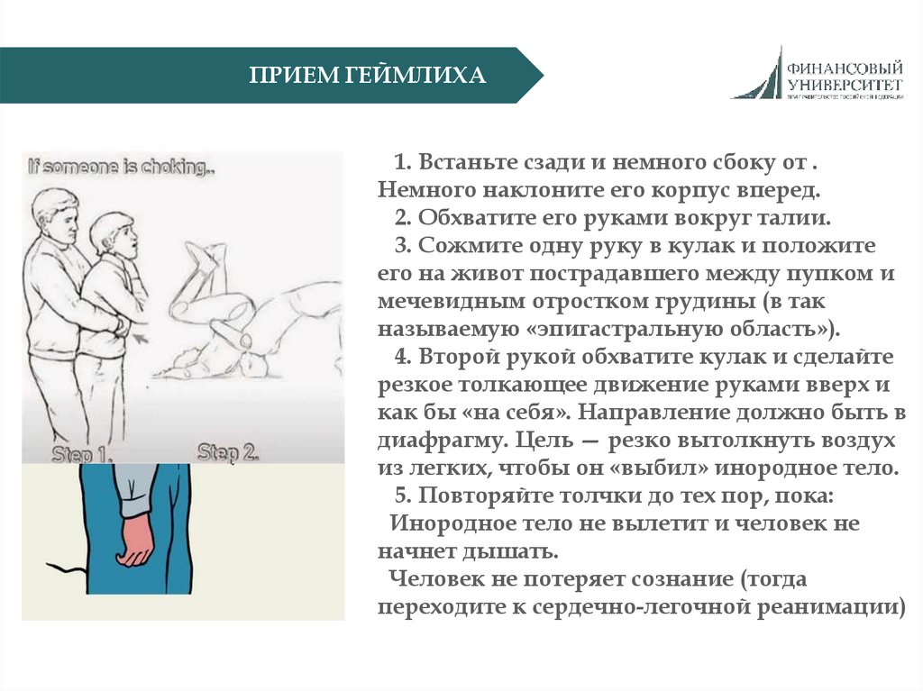 ПРИЕМ ГЕЙМЛИХА1. Встаньте сзади и немного сбоку от .