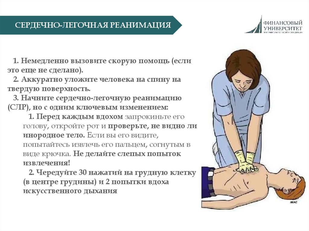 СЕРДЕЧНО-ЛЕГОЧНАЯ РЕАНИМАЦИЯ1. Немедленно вызовите скорую помощь (если