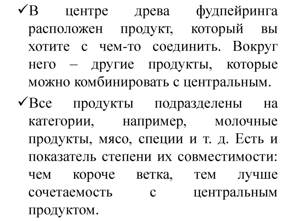 Было составлено древо фудпейринга,в котором чётко показаны, какие