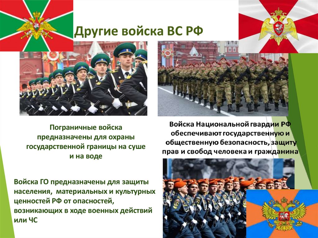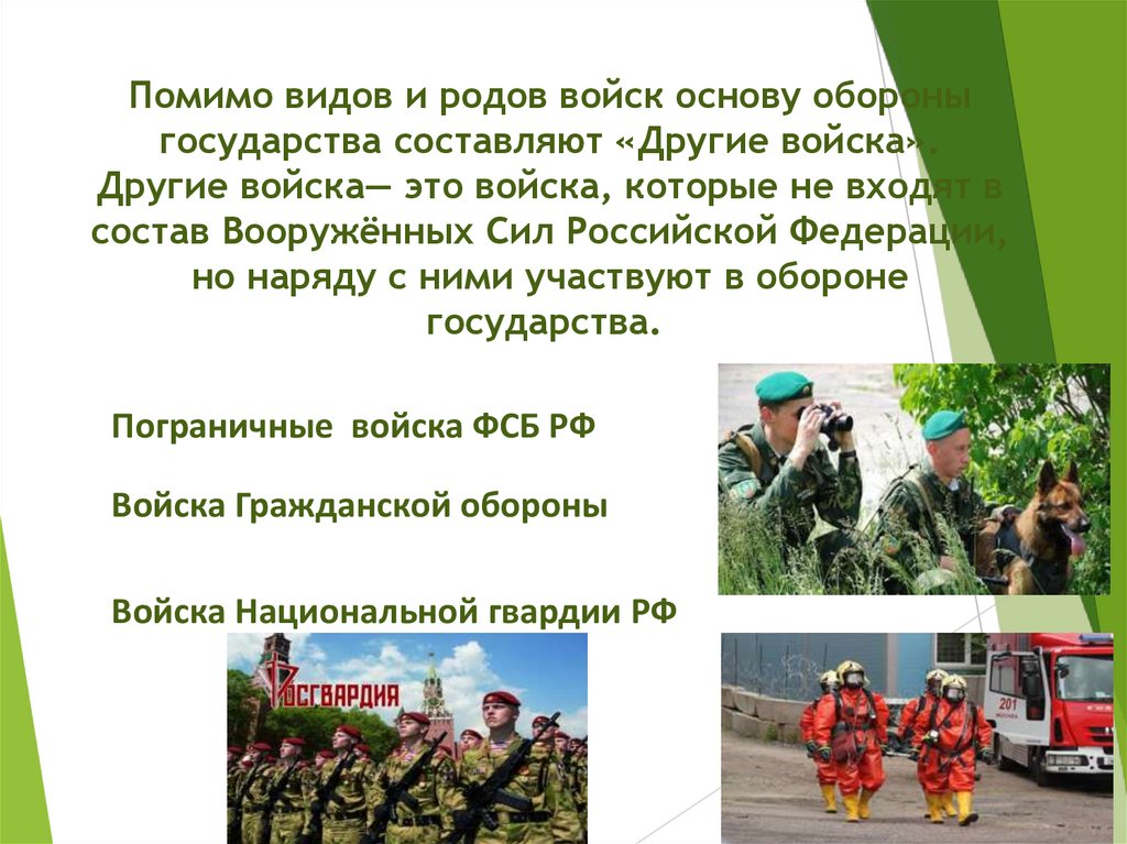 Помимо видов и родов войск основу обороныгосударства составляют «Другие войска».