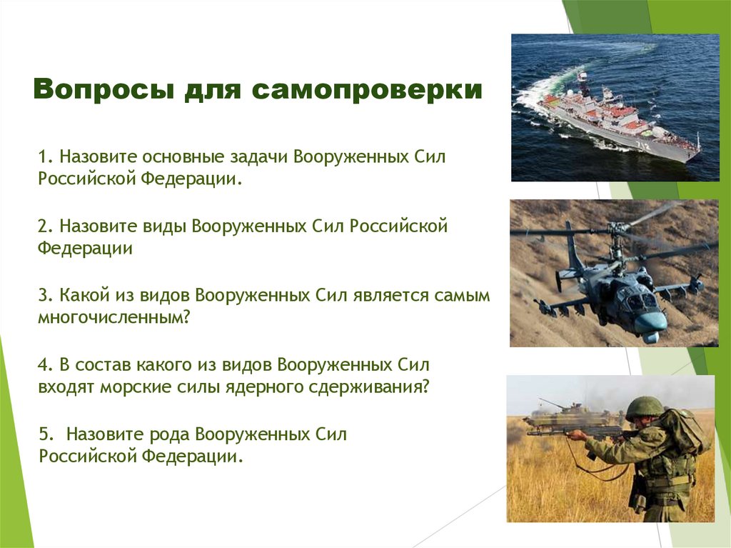 Вопросы для самопроверки1. Назовите основные задачи Вооруженных Сил