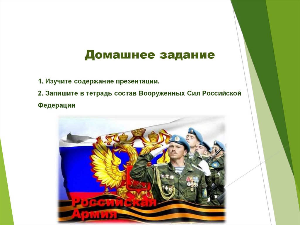 2. Запишите в тетрадь состав Вооруженных Сил Российской