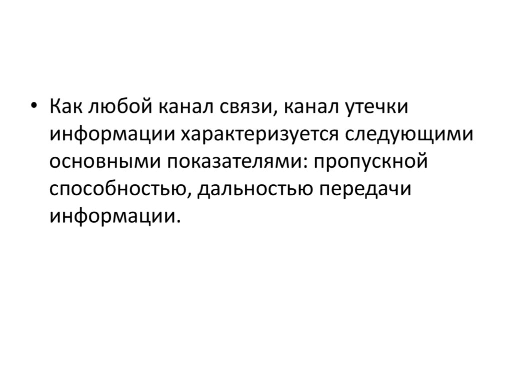 • Как любой канал связи, канал утечкиинформации характеризуется следующими