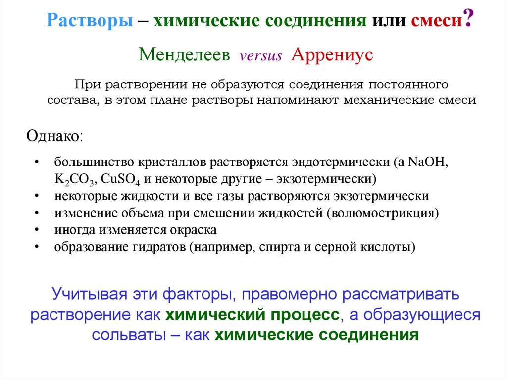 Растворы – химические соединения или смеси?Менделеев versus Аррениус